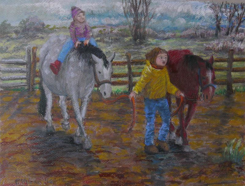 Putting Horses Out to Pasture, c. 2016, oil pastel, 13 1/2 X 10 1/2